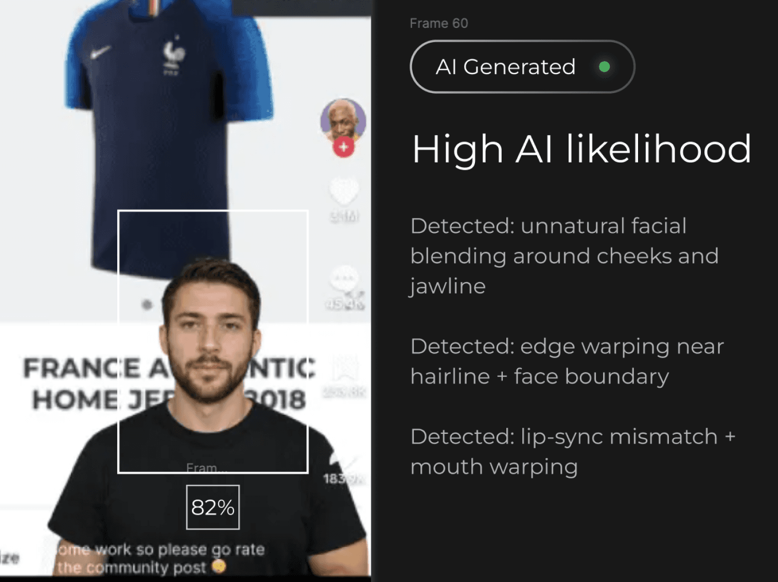 Vero gives you a clear percentage showing how likely the video is AI-generated — no vague “maybe.”